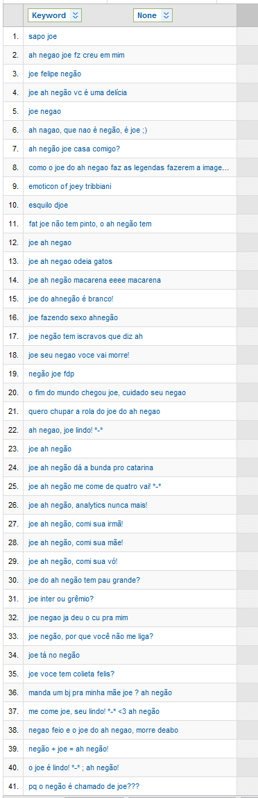 Como o blog tava meio mal das pernas nessas últimas semanas, acabei esquecendo dos nossos queridos visitantes via Google, e o que eles buscam pra chegar aqui. Mesmo assim, não deu pra juntar muita coisa boa.