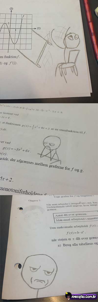 Uma vez eu achava que ia tirar zero numa prova e desenhei uma enorme pingola atrás da folha.