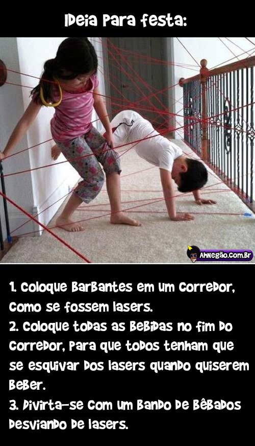 Ideia para festa 26/07/2013 26/07/2013 JÁCSO.. JÁC… JÁÁÁÁCSO… CARA… PEGA O DIAMANTE… EU FUI FERIDO PELO LASER SALVA SUA VIDA E ME TRAZ UM RED LEIBO… Tweet TAGS: Brincadeiras de crianças para adultos Lasers Comentários