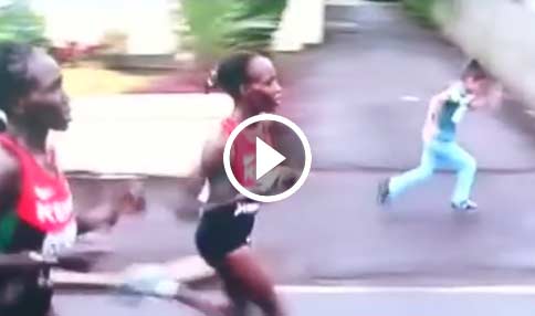 Criança tentando correr a maratona