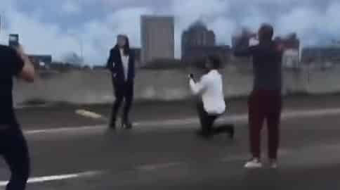 Nossa cara, muito lindo mesmo você bloquear uma ESTRADA DE 50 PISTAS pra fazer isso. Tem UM TRILHÃO DE LUGARES NO MUNDO pra fazer isso, mas não, você prefere fazer todo mundo se atrasar. Parabéns cara.