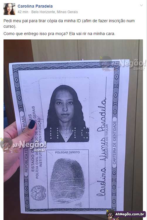 A pessoa pede seus documentos você chega com uma CARTOLINA na mão porque afinal o tamanho importa sim. Aguardemos o desenrolar da história.