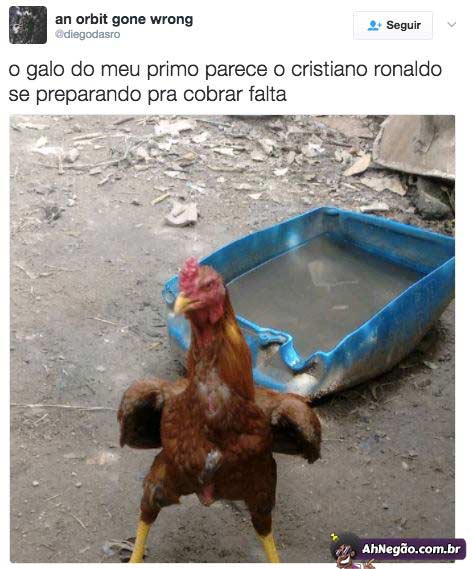 O galo especialista em bolas paradas 10/02/2017 10/02/2017 Cara, se alguém não fizer uma camisetinha branca com um número 7 pra esse galo, eu mesmo vou até lá e faço. Tweet TAGS: Cristiano Rogalo Comentários
