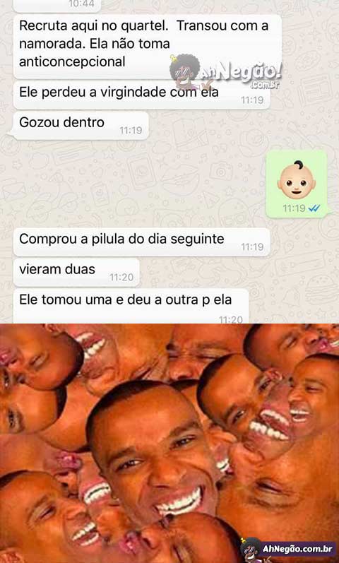 Imagina se o espermatozoide resolve escapar no dia seguinte e ir atrás da mina né…