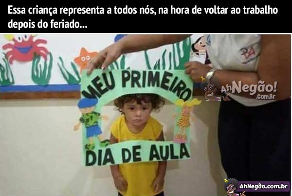 Após esse feriado, já estou bebendo água novamente, arroz e feijão voltou a ser meu almoço ao invés de resto de pizza e com muita dificuldade estou novamente usando cueca. Hoje é um dia em que todos nós estamos com essa cara, mas é preciso voltar à vida real.