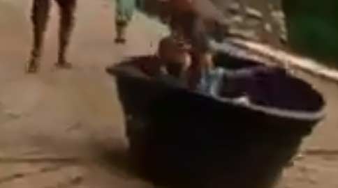 Um tempo atrás eu postei um vídeo parecido em que eles tinham colocado rodinhas na caixa d’água, mas naquele caso a descida era menor e em linha reta. Se essa caixa d’água tivesse rodas, a morte era certa.