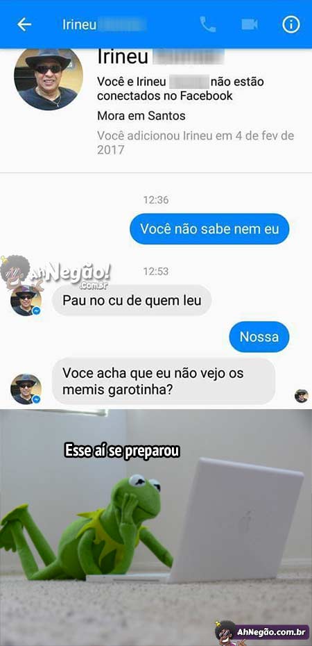 Tô na dúvida se esse não é aquele mesmo Irineu do vídeo. Mesmo que não seja, ele sabia o que ia acontecer, e se preparou pra isso. Uma pessoa proativa.
