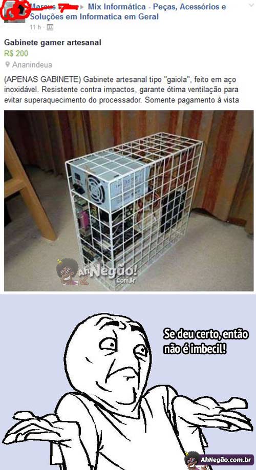 Vai ser difícil aparecer algum gabinete, por mais caro que seja, mais ventilado que esse. A princípio parece imbecil, mas é tão eficiente e barato que se torna inovador.