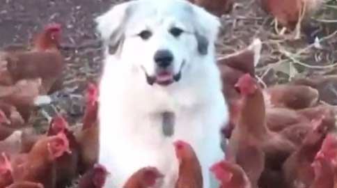A serenidade desse cachorro em meio a tanta galinha é algo que eu quero pra minha vida.