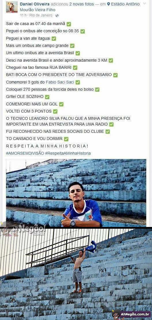 A história pega mais preço quando você descobre que é um jogo da SÉRIE C DO CAMPEONATO CARIOCA. De todos os 271 presentes, só esse cara comemorou nesse dia. Se valeu a pena? Só olhar pra cara dele…