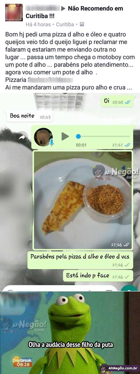 Mano, a falta de noção das pessoas é inacreditável. O cara da pizzaria provavelmente nunca imaginou que esse simples gesto de TO NEY AÍ ia repercutir tanto. Tem gente que não nasceu para lidar com pessoas.