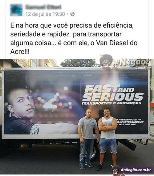 Você pode levar suas coisas num caminhão comum, ou então chamar o Vin Diesel do Acre, que vai chegar 2 dias antes de você na casa nova, batendo corrida com 3 Ferraris no caminho e vencendo todas, sem deixar nenhum arranhão na sua geladeira. O bagulho é FAST mas é SERIOUS.