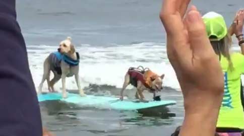 Não basta o fato de existir um CAMPEONATO MUNDIAL DE SURF CANINO, precisa acontecer uma manobra arriscada pra provar que eles são melhores que nós.