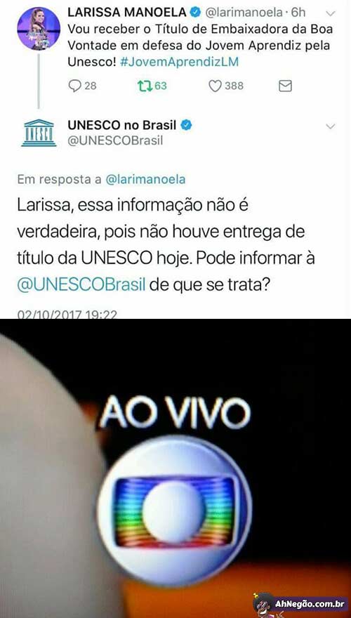Inclusive o estagiário da Unesco não apenas desmentiu ela como TODOS os veículos de comunicação que noticiaram. O cara tava decidido a não deixar passar a FAKE NEWS.
