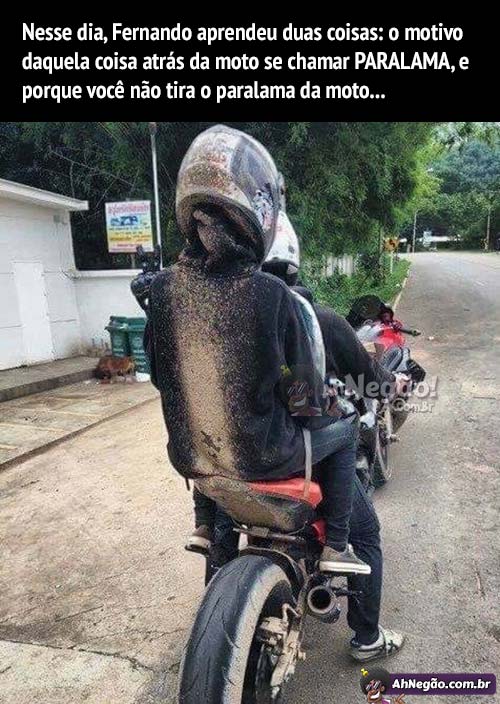 Esse aí vai tirar terra da bunda por uns 3 dias. Acredito que a ausência da placa e o fato do cara estar aparentemente amarrado no bagageiro da moto me diz que o paralama caiu no meio do caminho, junto com o cara…