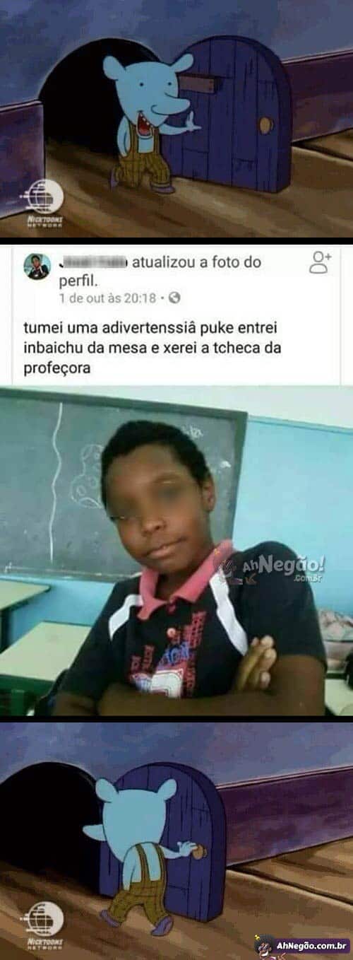 Na minha época de escola o que dava advertência era soprar bolinhas de papel e cuspe nas pessoas com a caneta. Hoje isso não é nada perto do que essa pirralhada inferniza…
