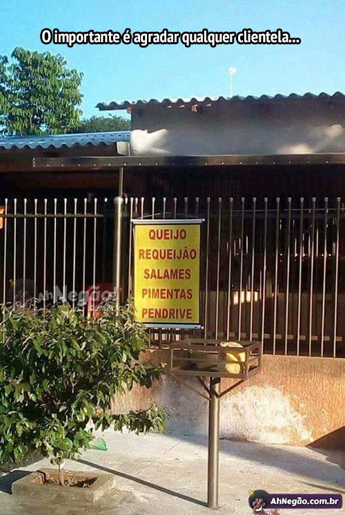 Aquele lugar que vende de tudo 21/12/2017 21/12/2017 Ô JUNIN, VAI LÁ NA VENDA E TRAZ MEIO KG DE QUEIJO E O TROCO EM PENDRIVE DE 1GB… Um bom lugar sempre vende de tudo. Tweet TAGS: Um bom buteco Comentários