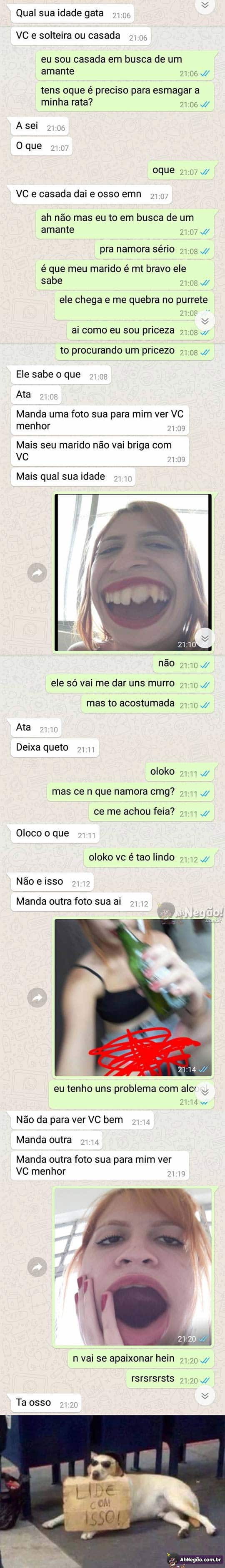 O rapaz ainda não está preparado para níveis avançados de retardo. Inclusive a mina perfeita pra mim precisa ser “RRR”: ruiva, rabuda e retardada.