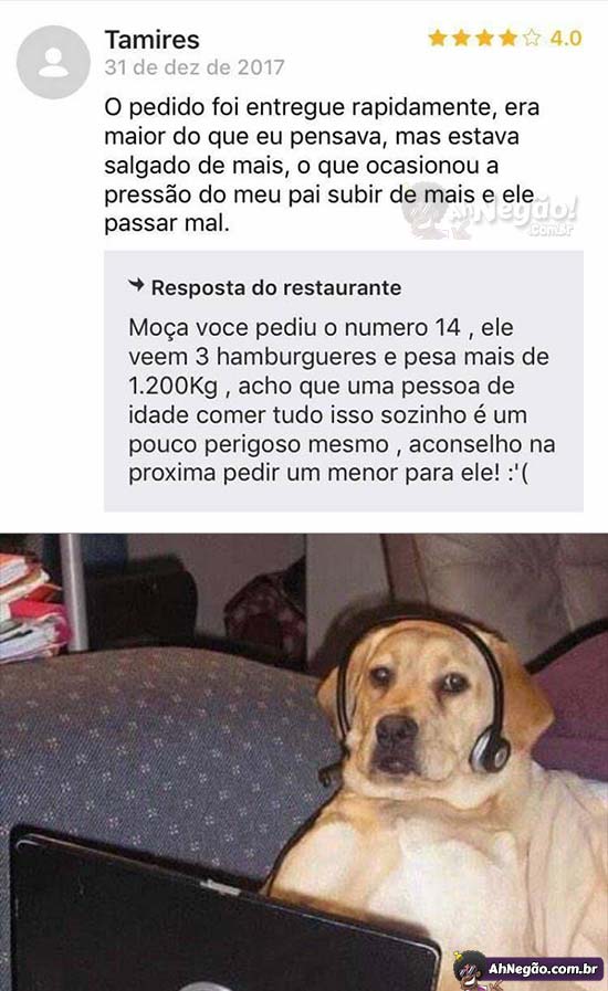 O cara pede comida pra 15 pessoas e reclama de ter morrido. Sal era o que menos tinha nessa comida…