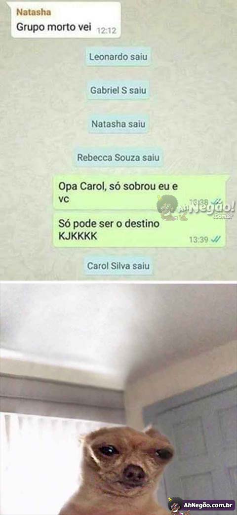 E não foi hoje que uma grande história de amor começou. O destino nem sempre acerta, mas um dia, em algum grupo morto, vai acontecer…