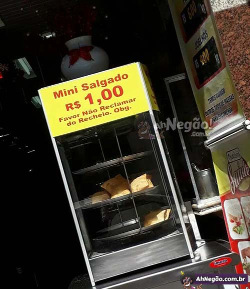 Mano tá 1 real o salgado, pode ser recheado com areia, eu não tô nem aí…