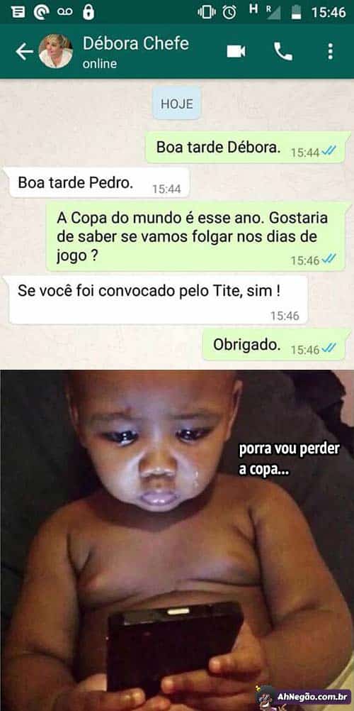 Cara, dia de jogo do Brasil na copa até hospital dá uma pausa no meio da cirurgia pra ver. Até o paciente é acordado pra não perder o jogo. O ser humano precisa de folga em dia de jogo pra sobreviver.