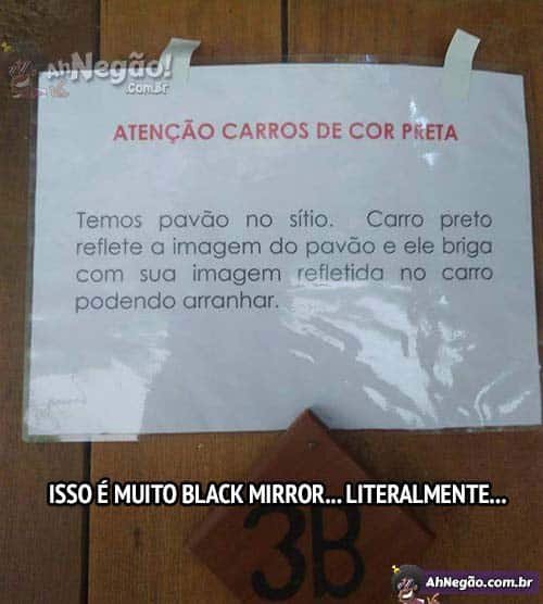Tá, e se eu cheguei no sítio de carro preto eu estaciono o carro onde? Na cabeça da minha benga?