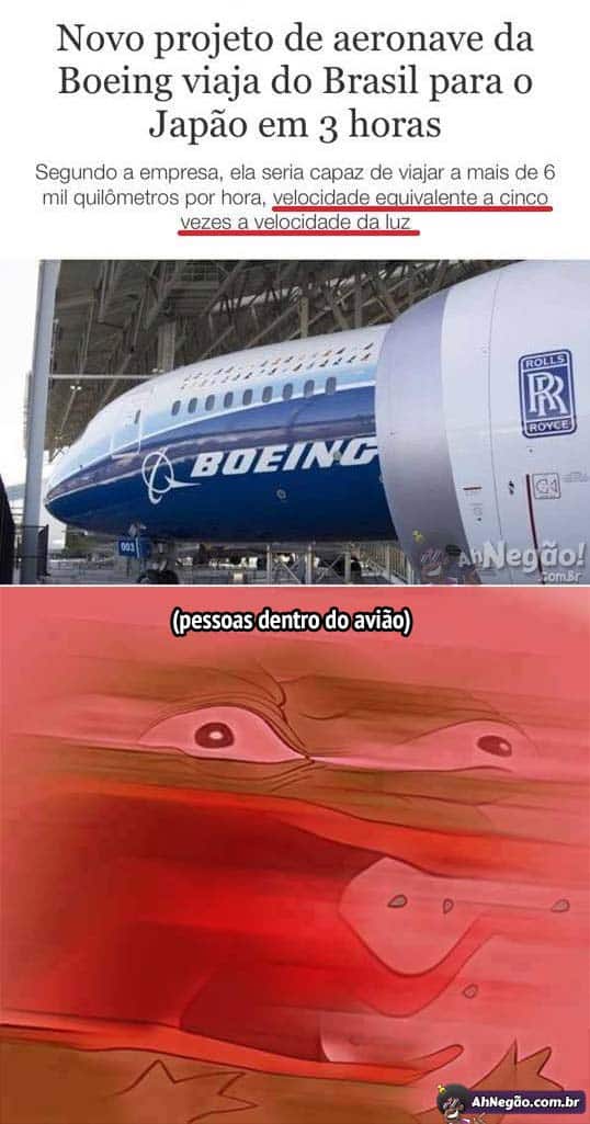 Me falaram uma vez que nada viaja mais rápido que a luz no Universo todo. Sinto muito luz, esse avião ganhou bonito.