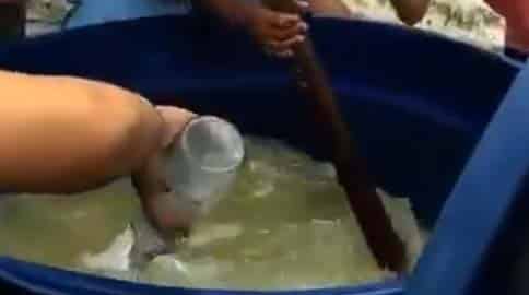 Após o feriado, a caixa d’água voltou pro local de origem e agora todo mundo vai tomar banho com água de cachaça por uma semana.