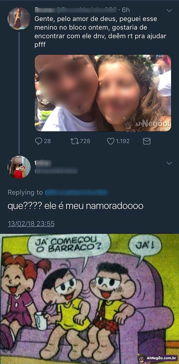 Apenas um dos muitos namoros que terminaram nesse carnaval. Teve muito namoro começando, e muitos Enzos já estão nas barrigas, mas as pessoas ainda nem sabem.