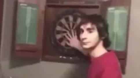 Não sabemos quem tá mais bêbado, o cara que jogou o dardo ou o que amorteceu o dardo com o osso do crânio, pois parece que ele nem sentiu. No dia seguinte ele vai se perguntar por que tem um furo na cabeça dele…