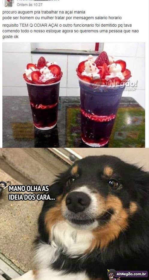 Na entrevista de emprego você tem que dar uma colherada num açaí. Se não fizer cara feia, tá fora.