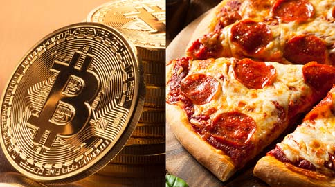 Esse vídeo abaixo foi gravado em 2011. Nele, um cara ensina os passos para comprar pizza pela internet usando Bitcoin.