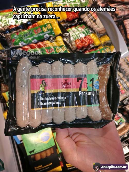 Os alemães parecem nunca se cansar da zuera 20/06/2018 20/06/2018 7 linguiças alemãs, uma brasileira. Bem bolado, bem bolado. Mas aguardem: VAI TER VOLTA, E VAI SER NO CAMPO. Tweet TAGS: Vamo ter que ganhar desses cara Comentários