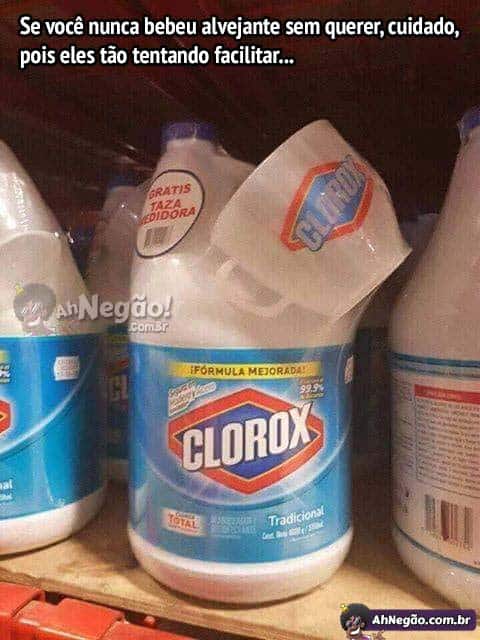 Não duvidem se aparecer alguém que bebeu alvejante de canequinha.