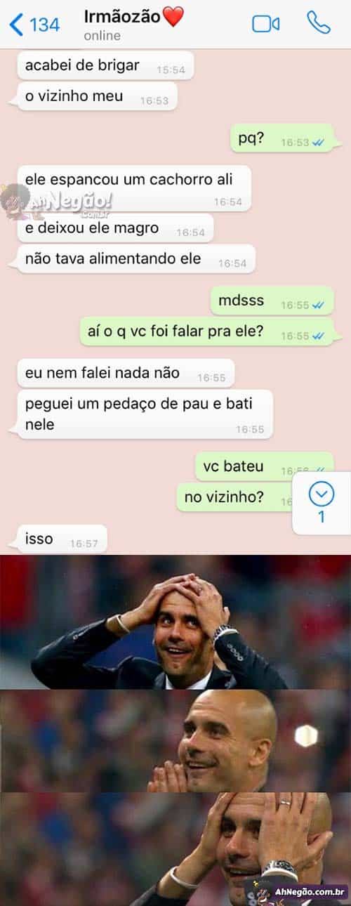 A gente sempre tem que falar que violência é errado e tal mas não tem quem se segure nessa situação.