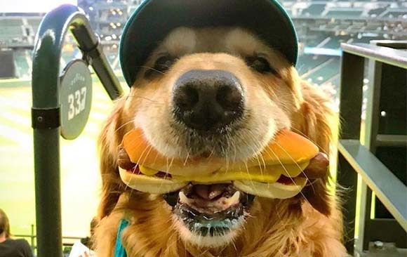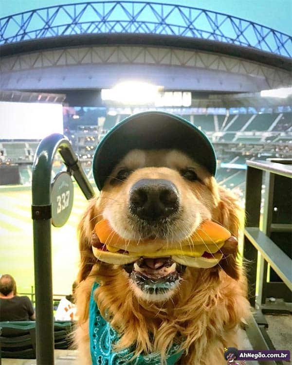 Ele é tão legal que ele sabe que o dono dele vai ficar feliz com a foto, então ele não morde o lanchão…