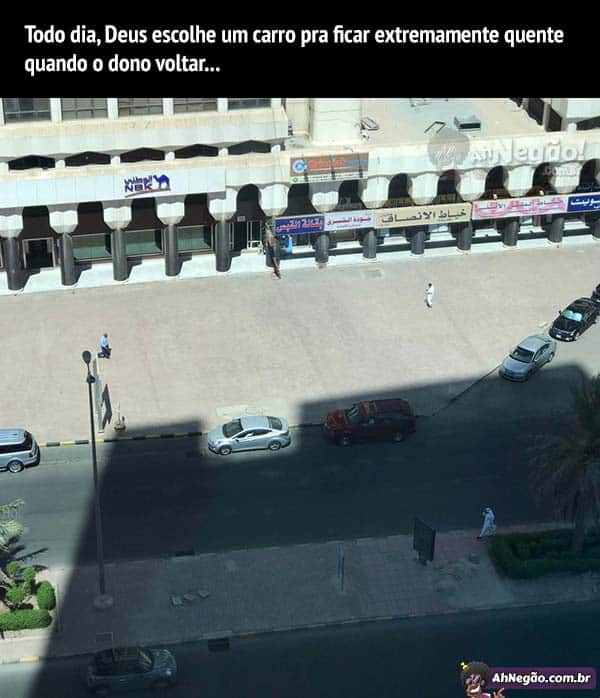 Todo dia, um azarado é escolhido pra dirigir queimando a bunda no banco e as mãos no volante por uns minutos, até o carro esfriar…