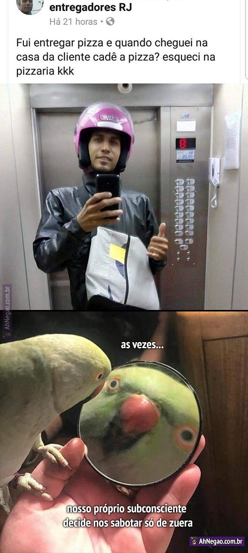 O trabalho do cara é entregar coisas. Ele vai até o endereço de entrega sem a coisa que ele tem que entregar. Ou seja, a mente dele fez ele falhar na única coisa que ele faz só de zuera, pra que ele tenha que voltar…