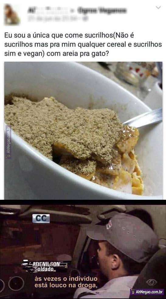 Quando a pessoa chega nesse ponto, ela já não diferencia comida de qualquer outra coisa. O perfume vira vinagre, a samambaia vira salada e a areia vira farofa…