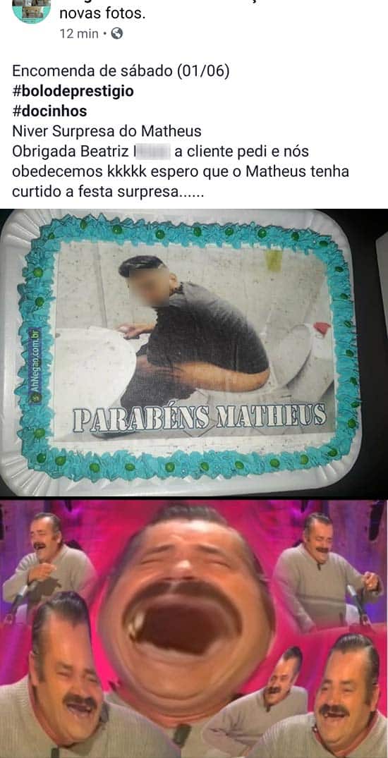 O mais legal é que era uma festa surpresa, então o bolo também era…
