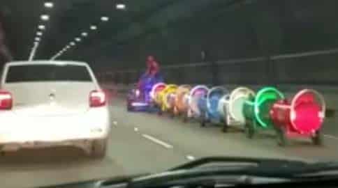 Os motoristas devem ter adorado o pequeno impacto que o veículo causou no delicioso trânsito da cidade…