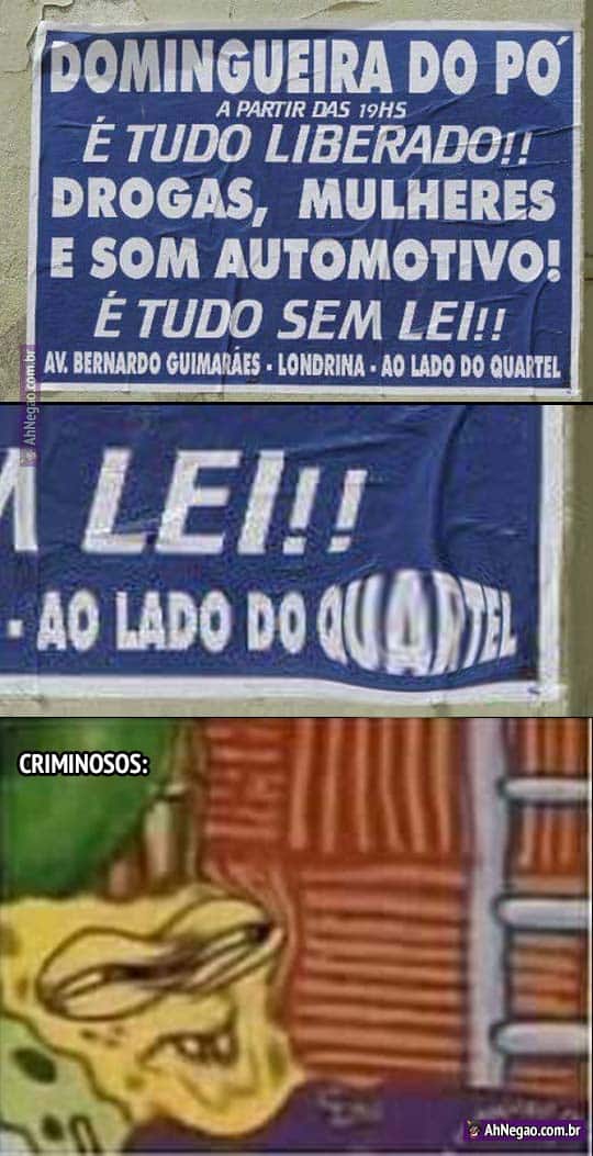 Uma festa liberal demais pra ser verdade 07/10/2019 07/10/2019 Só faltou escrever CRIMINOSOS BEM VINDOS, TRAGAM SUAS ARMAS NÃO REGISTRADAS. ASSINADO: NÃO É A POLÍCIA. JURO. Tweet TAGS: Ótimo lugar Comentários