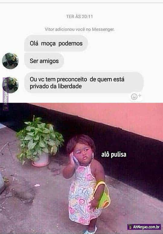 Fazendo contato com pessoas que não deveriam fazer contato 27/01/2020 27/01/2020 PRIVADO DA LIBERDADE é a forma mais bonita de dizer PRESO POR ESFAQUEAR PESSOAS NUM BAR. Recomenda-se muita cautela. Tweet TAGS: CHAMA A PULISA Comentários