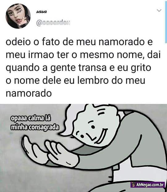 Quando a pessoa amada tem o mesmo nome de alguém da família 13/01/2020 13/01/2020 Game of Thrones deixou certas sequelas no povo… Enfim, pra completar, a fantasia de JOJO TODDYNHO: Tweet TAGS: Opaaaa perae Comentários