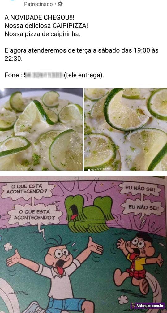 Já temos o primeiro sabor de pizza ABSURDO do ano 12/02/2020 12/02/2020 MEU DEUS CARA COMO ISSO FUNCIONA? QUE GOSTO TEM? DÁ PRA FICAR BÊBADO? SÃO MUITAS PERGUNTAS PARA APENAS UMA PIZZA… Tweet TAGS: Pizza de caipirinha Comentários
