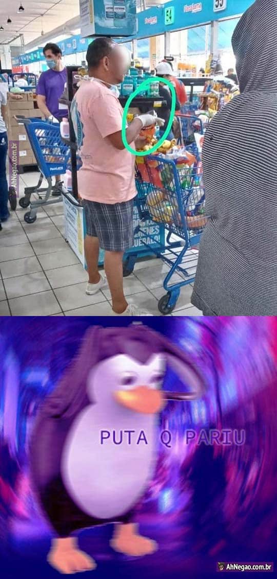 Usa a luva pra contaminar só a luva. Aí abre o salgadinho, tira a máscara e come com a luva, tudo isso ainda no supermercado.