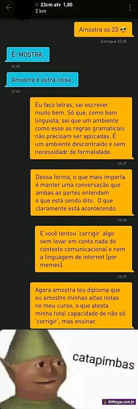 Realmente é chato ter que explicar que as vezes a gente escreve errado de propósito, mas nesse momento é preciso exercitar a paz de espírito, e apenas mandar a pessoa pra putaquepariu já que ela claramente não é a pessoa certa pra você.