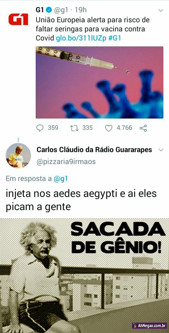 Aí descobrem que o mosquito EDSON transmite não apenas a dengue mas também a vacina do coronga…