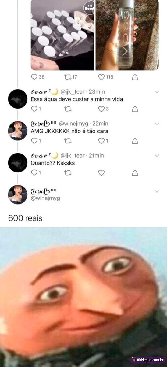Imagina pagar 600 conto numa água que tem gosto de água kkkkkk…